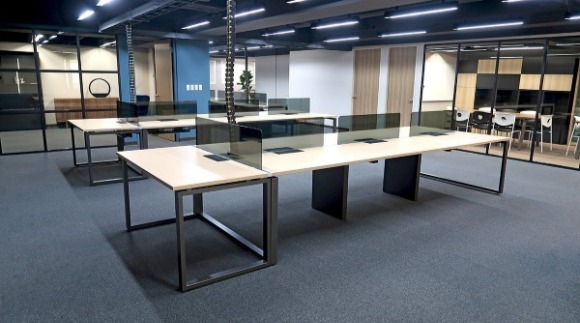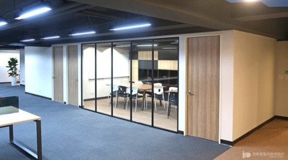 黑框簡潔的設計,如虛線般讓兩個空間各自獨立,利用玻璃的穿透性,增加視覺的開闊感,同時保留了空間的遼闊感,讓空間的規劃更貼切地融入職場生活。